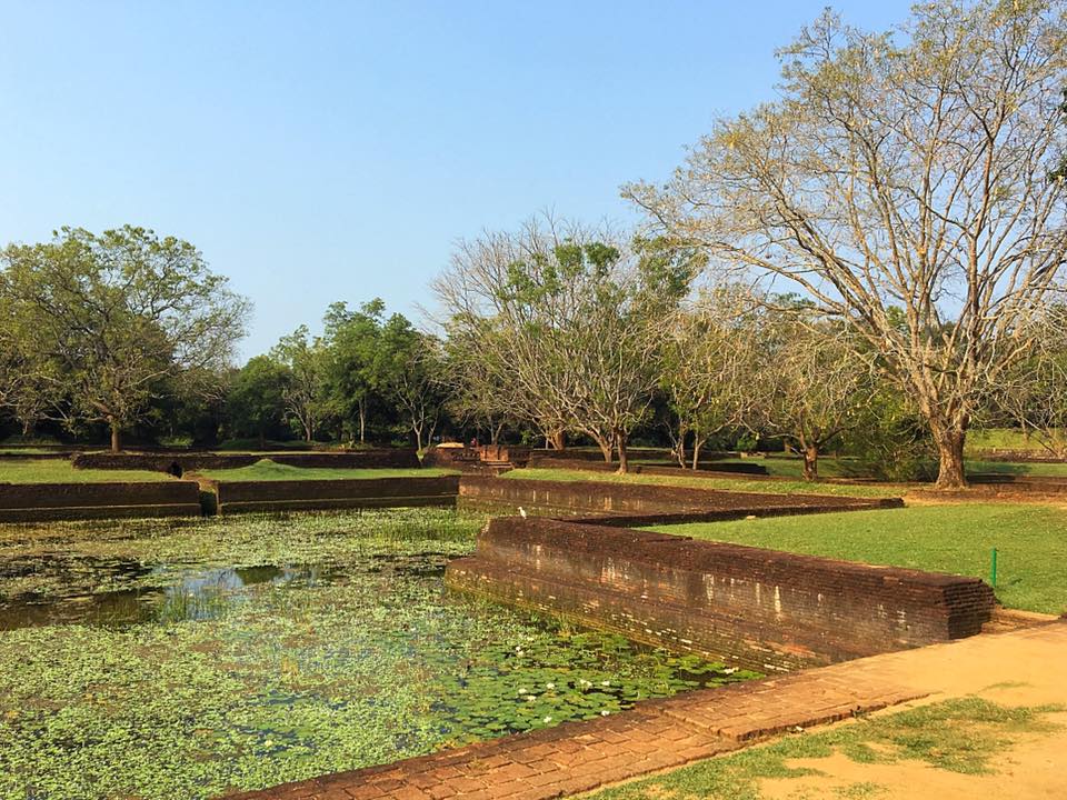 Сверху открылись захватывающие виды на сады с фонтанами, которые до сих пор функционируют (в сезон дождей), и на соседнюю гору Пидурангала. Спустившись вниз, посмотрели несколько пещер.